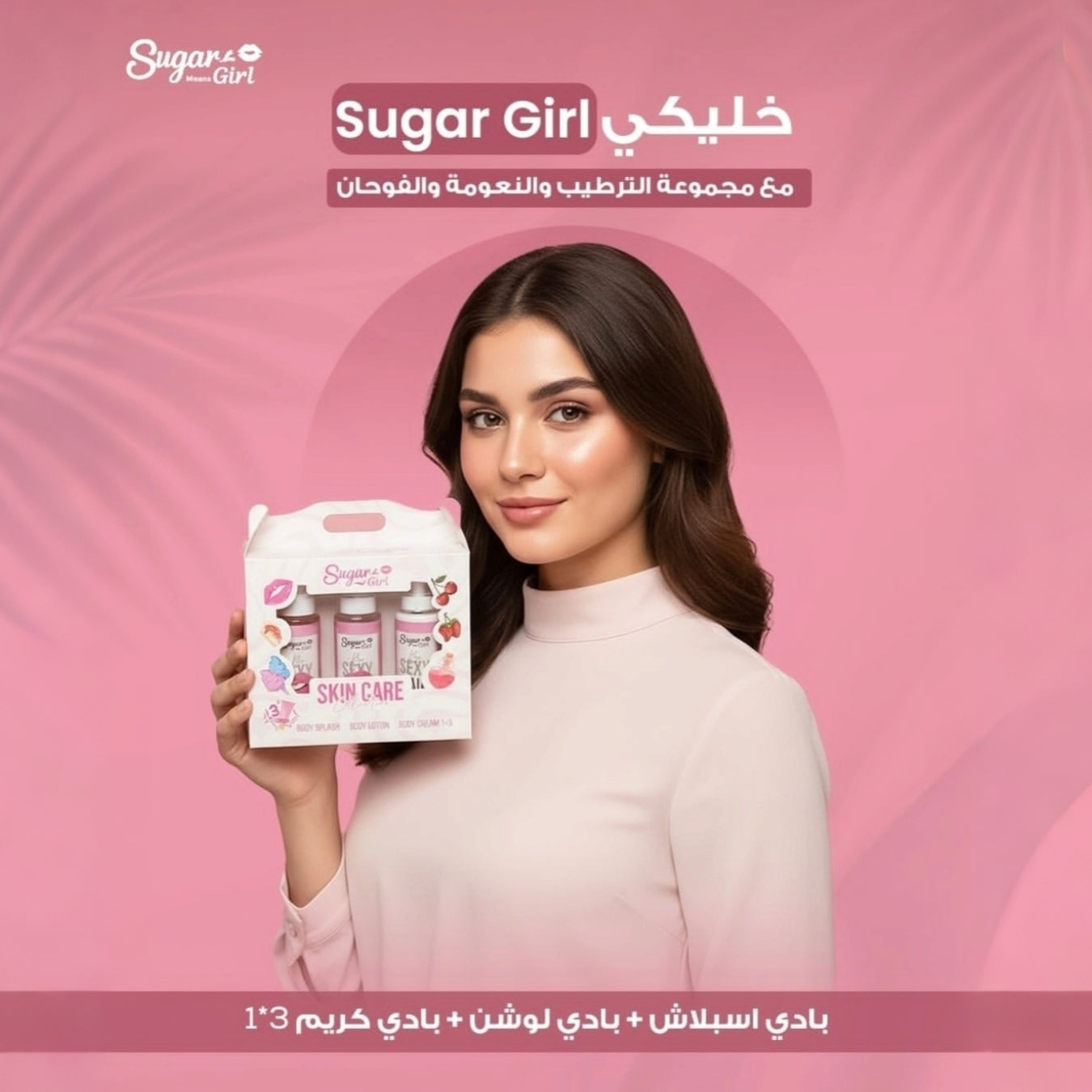 A complete body care routine featuring a 3-in-1 hair-reducing and brightening cream, vitamin-enriched nourishing lotion, and a refreshing long-lasting body splash.